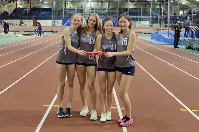 The girls’ 4x400m team, Juliet Winiecki, Mai Ly Reinking, Kara Kochansky, and Danielle Dragoni, placed 3rd at the Millrose Trials with a season’s best time of 4:08.84, which qualified them for the Millrose Games and Nationals. This foursome previously hit the New York Standard and qualified for Nationals in the 4x200m with a time of 1:46.88 at the Coach Saint Invitational in December.