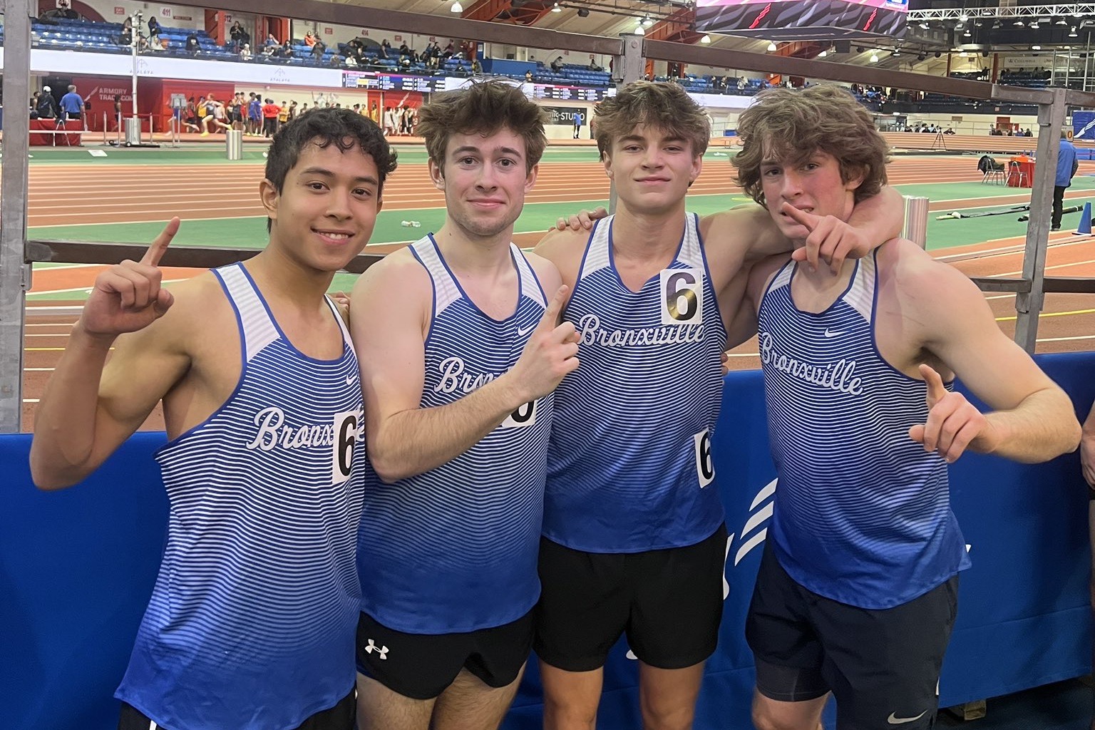 Jan. 18, 2023: After winning leagues in early January, Bronxville track and field athletes competed in four relays and the pole vault at the Millrose Trials last week. The Broncos had outstanding success setting season’s best performances in every event. The girls’ and boys’ 4x400m relay teams and pole-vaulter Max Dicker qualified for the historic 115th Millrose Games, which will be held at The Armory on February 11th.