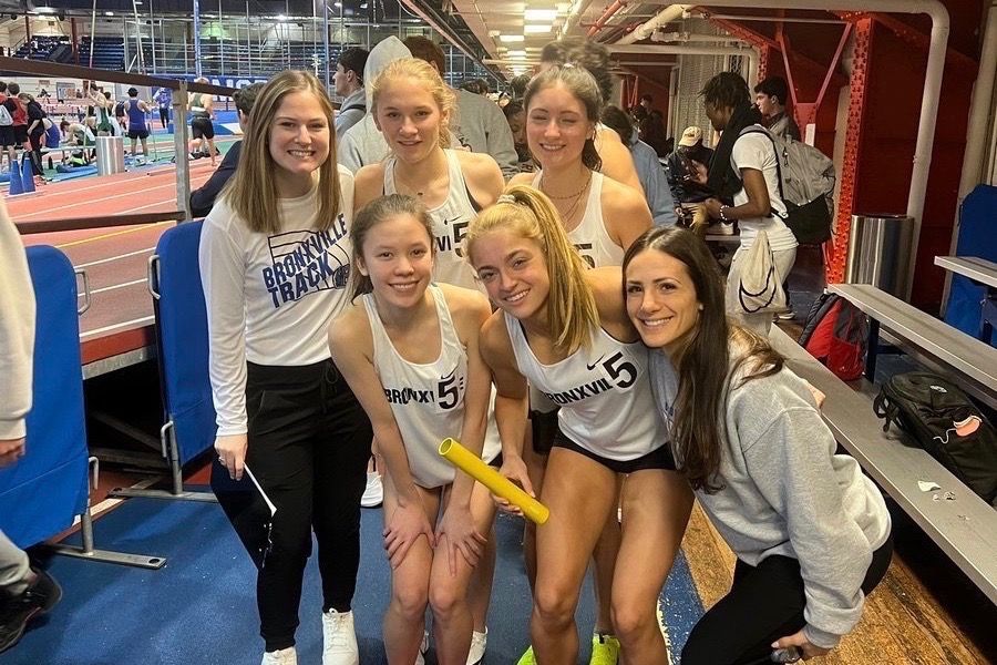 Members of the Bronxville girls’ indoor track and field team at the Westchester County Championships. Photo courtesy of @bxvboystrack.