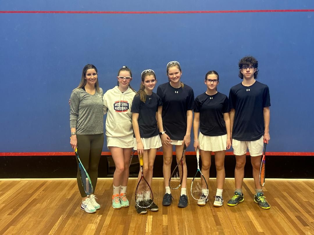 Pictured: Coach Julia LeCoq with (L-R): Rosie Vorbach, Caroline Cregan, Maggie Miner, Emma Glaser and William Glaser