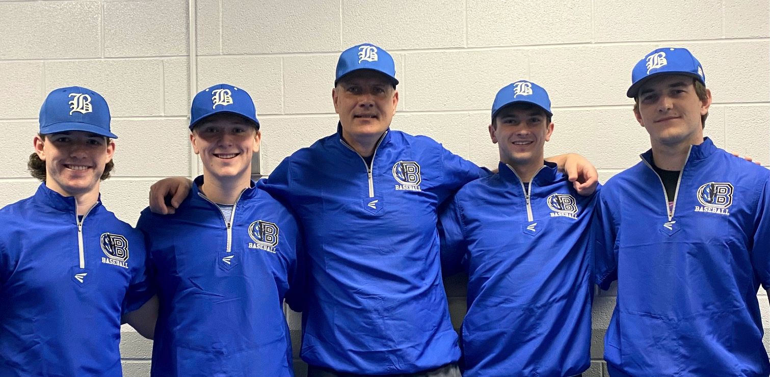 Bronxville Baseball 2023 New Head Coach, Michael Schultz (Center) with Captains (L to R) Ethan Jaquette, Connor Kenny, Ted Heraty and Chris Lockwood.