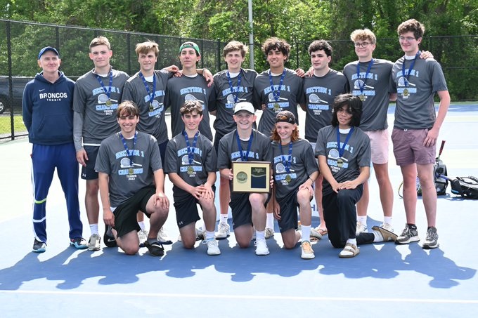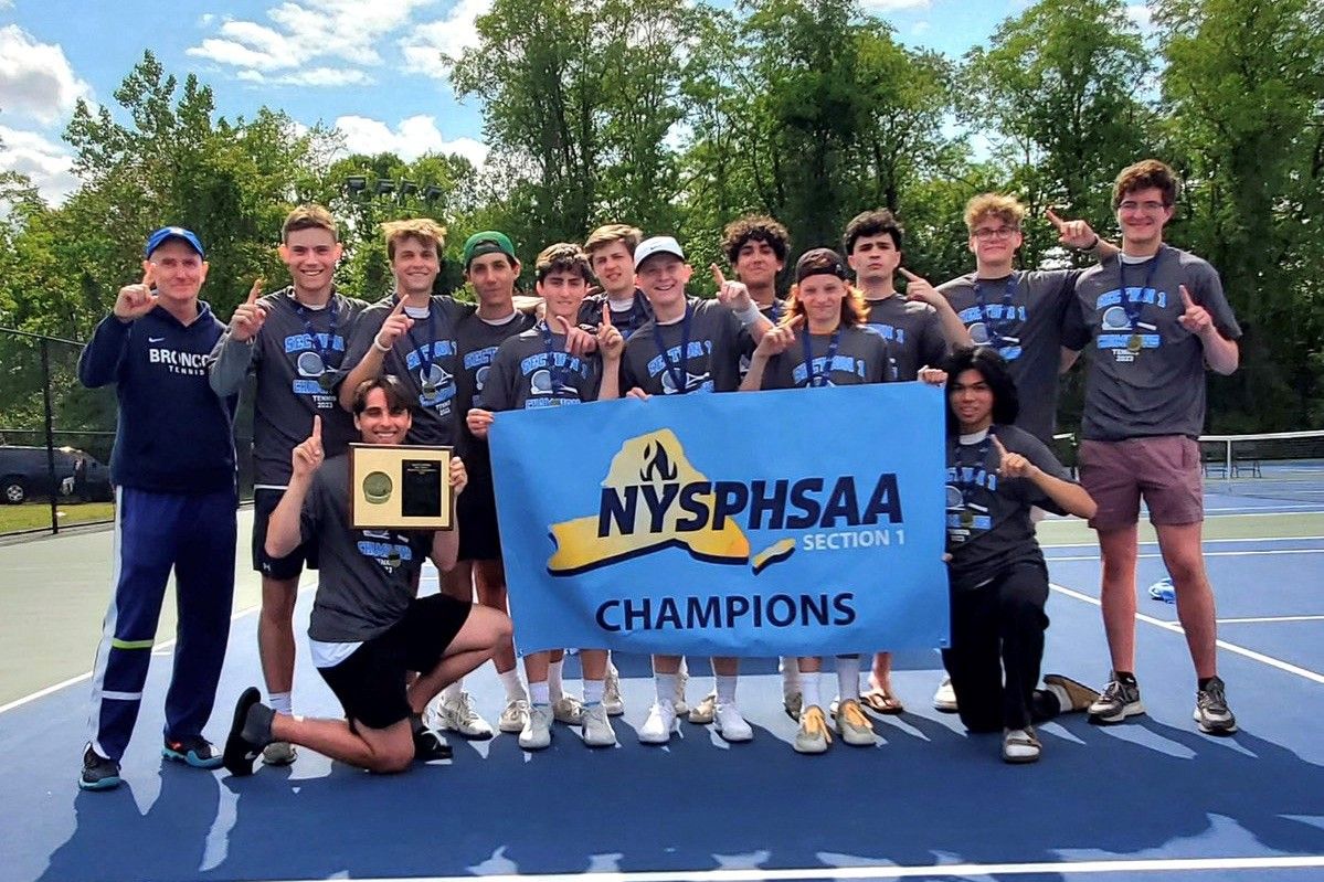 The team came into the tournament as the No. 6 seed. They beat their first-round opponent Irvington 3-0, and then beat No. 4 seed Briarcliff 3-0 in the quarterfinals. In the semifinals, the Broncos beat No. 2 seed Edgemont, and then clinched the Section Championship prevailing over Byram Hills. The highlight in the match against Edgemont was Max Monogenis coming from behind to win his 2nd singles match in a super tie-break. Additionally, Bronxville's No. 1 singles player Patrick Kenny gave up no more than two games in a set.