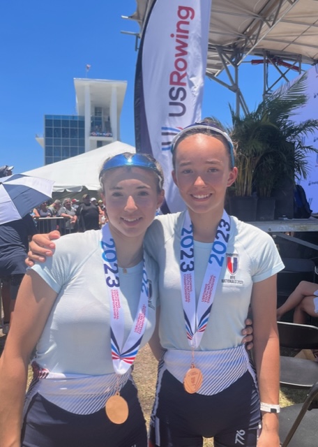 June 28, 2023: Competing in the U16 8+ boat at the U.S. Youth Rowing Nationals, Bronxville rowers Masha Lekovic and Sophia Hoyer helped lead their boat to a 3rd place finish in the A final, winning a bronze medal. Nationals was held at Nathan Benderson Park in Sarasota, Florida from June 8th-11th.
