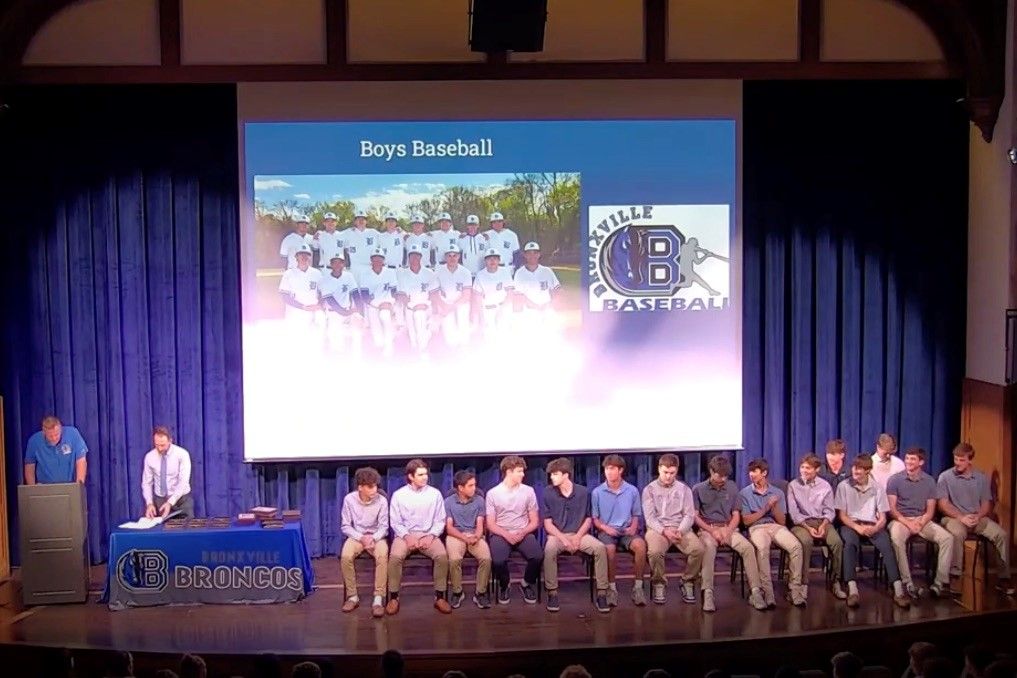 The Bronxville baseball team on stage at the Spring Sports Awards evening.