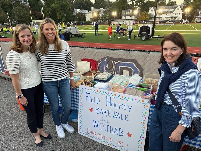 Field hockey mothers manning the bake sale during the homecoming game. Photo by S. Krause.