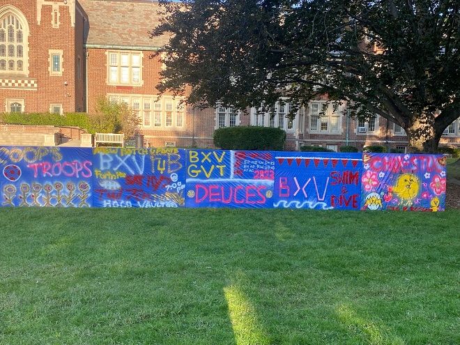 Oct. 4, 2023: Bronxville High School's homecoming week began on Monday and will continue through Saturday night. Bronco team banners were set up on the front lawn on Monday to mark the start of a week that is full of homecoming festivities and games.