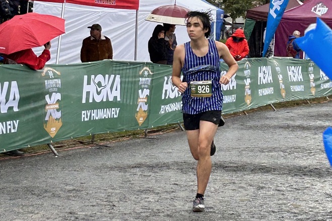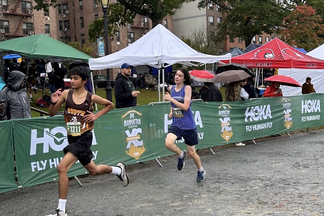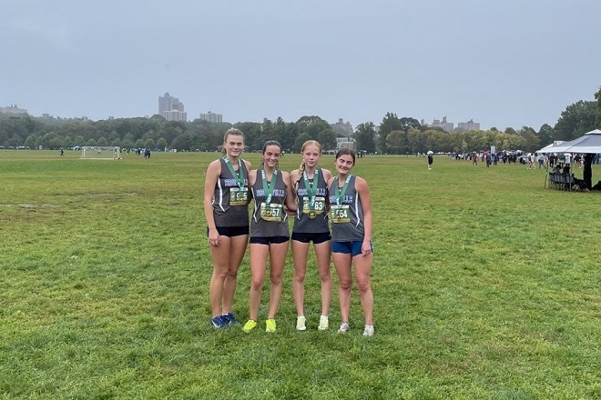 The boys’ varsity cross country team medaled at the Manhattan Invitational. Photo by J. Agnello.