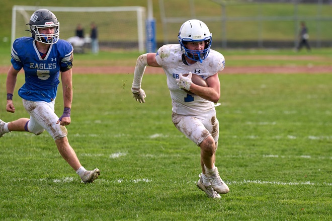 In the second quarter, Bronxville’s Davis Patterson scored after the Broncos took advantage of a Dobbs Ferry fumble to bring the score to 14-6. Before the end of the first half, the Eagles ran the ball into the endzone, but the touchdown was called back due to holding.
