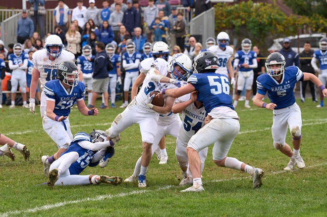 Nov. 8, 2023: The Bronxville football team is headed to the Class C Section 1 Championship after a 27-6 win over rival Dobbs Ferry at historic Gould Park last Saturday. In the other semifinal bracket, Westlake defeated Valhalla 21-6. Bronxville and Westlake will play at noon this Saturday at Arlington High School.