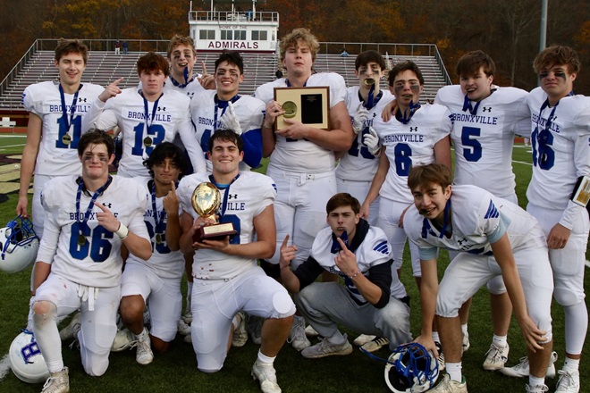 Nov. 15, 2023: The Bronxville football team was victorious over top-seeded Westlake on Saturday at Arlington High School to capture its first Class C Sectional Championship since 2010. The Broncos, who finished with a 3-4 record in the regular season, defeated Dobbs Ferry in the sectional semifinal 27-6.