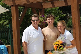 Jack Reilly (center) with BFC head swim coach Brian Hansbury and BFC head dive coach Melanie Dilascio. Photo by P. Reilly.