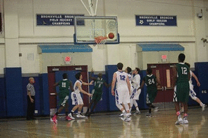 After losing by just four points at Woodlands, Bronxville was seeking redemption. Although they trailed by four points at the half, the Broncos grabbed the momentum in the third quarter, outscoring Woodlands 23-12 to take the lead. Sophomore Eddy Connors spurred the lead change with an outstanding defensive effort that held the Woodlands leading scorer to just two points. Sophomore Jeff Sargent added to the defense by taking two charges late in the game. The offense was driven by proficient three-point shooting by Matt Toal, Alston Tarry, Jack Reilly, and Brian DePaul. Tarry led the scoring with 21 points, and Toal added 14.