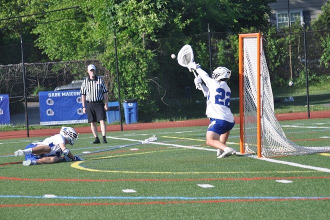 Luke Arrighi (22) with a save in a game against Blind Brook. Photo by J. Murrer.