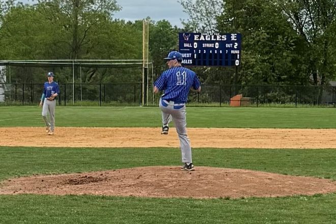 Henry Vail on the mound in the 3-0 no-hitter win over Eastchester. Photo contributed by M. Schultz.