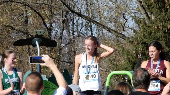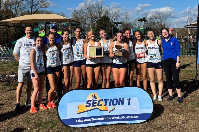 Nov. 12, 2025: The Bronxville girls’ cross country team had a decisive win at the Class C Sectional Championship at Bowdoin Park in Wappingers Falls on Saturday. The Broncos scored 28 points and their closest competitor, Pleasantville, scored 47.